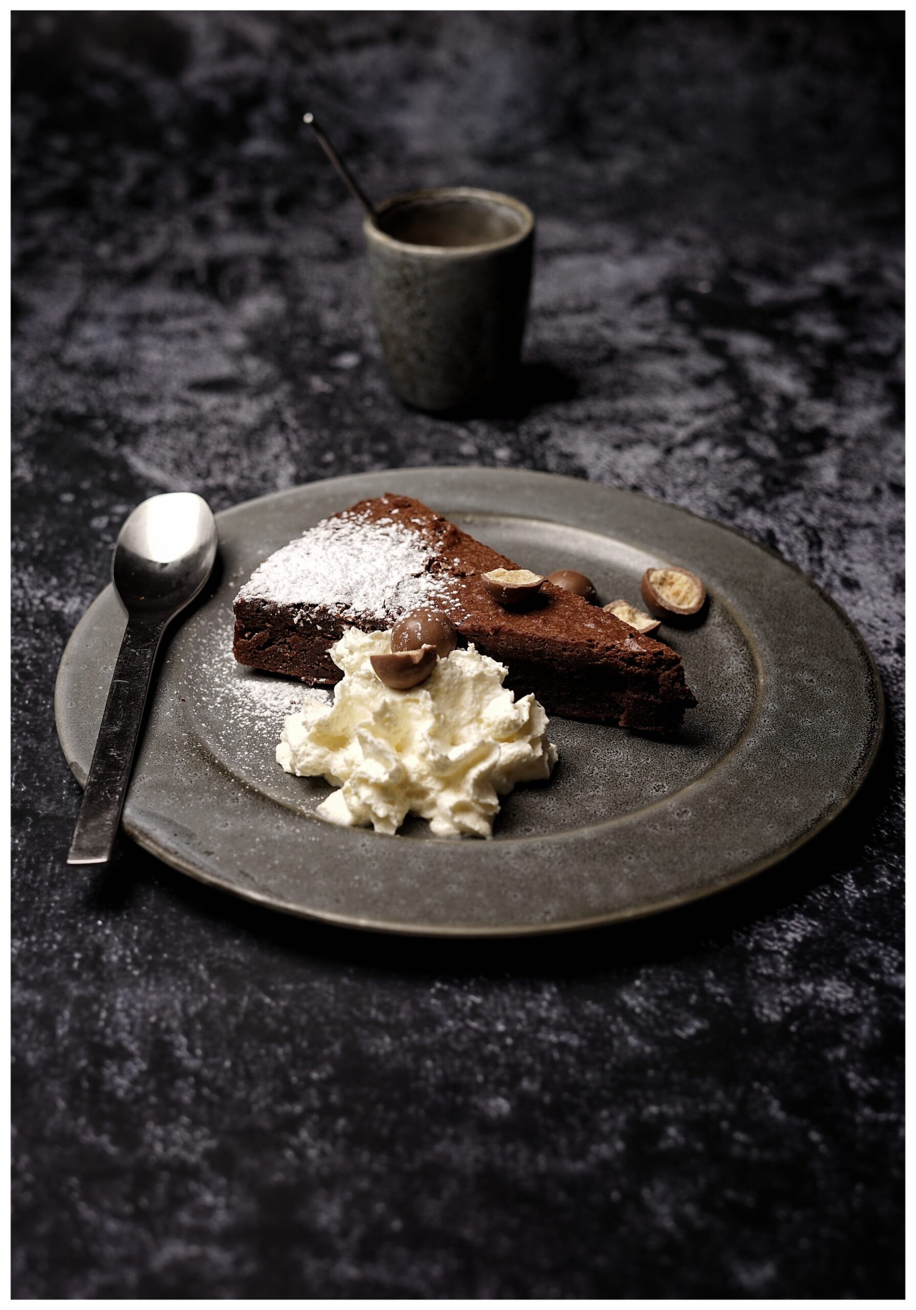 Gott med vispad grädde och Maltesers till. En riktigt knockout till chokladtryffelkaka.